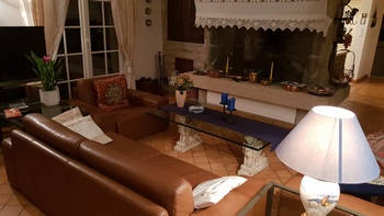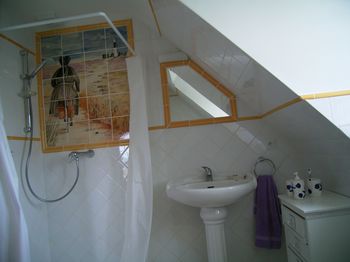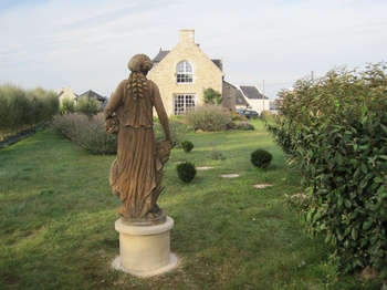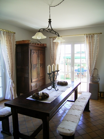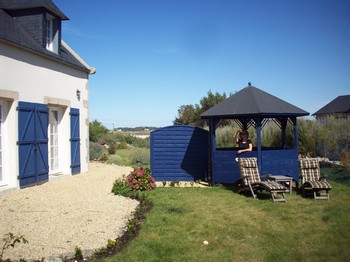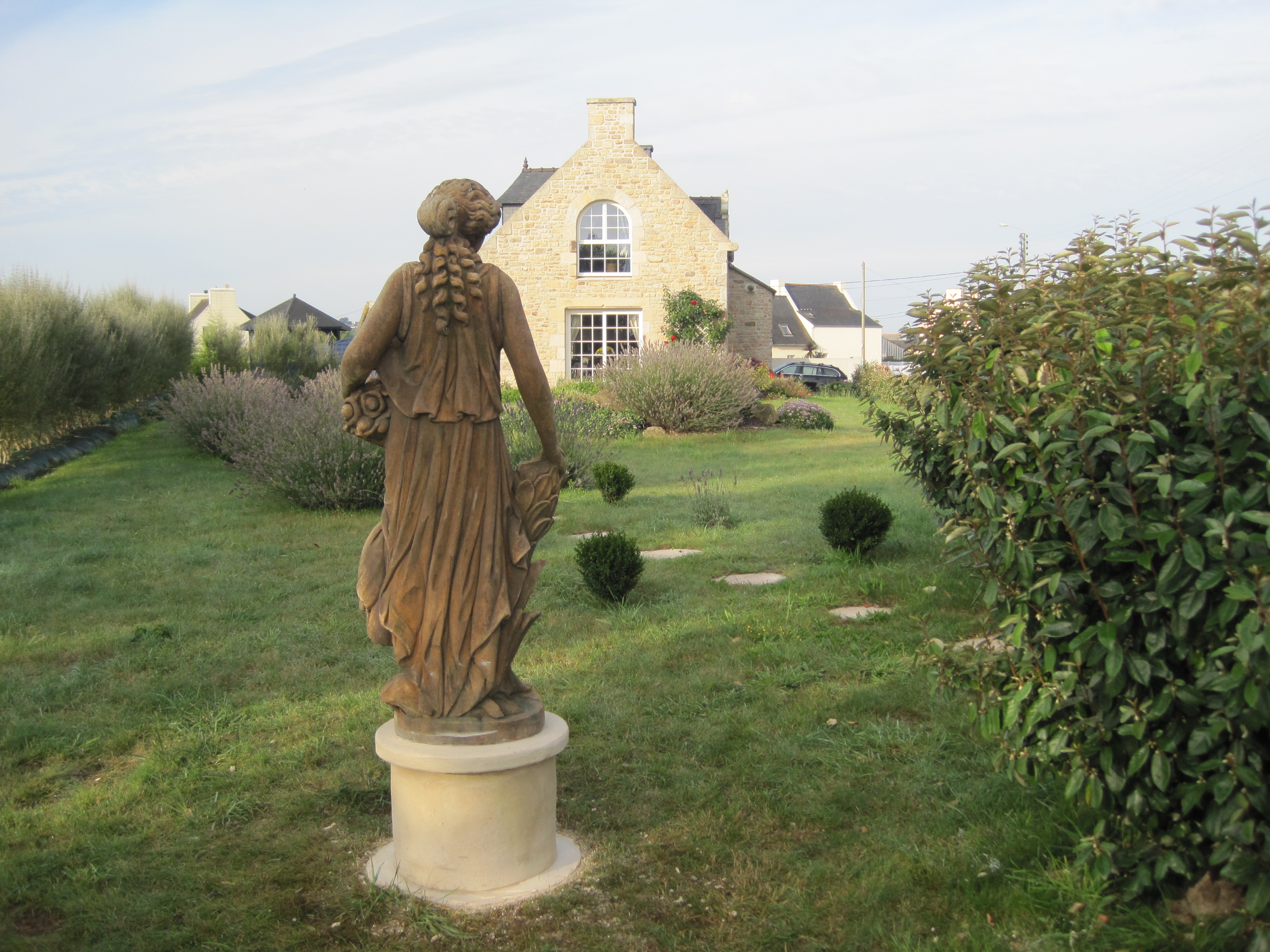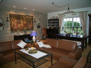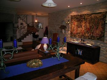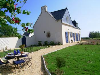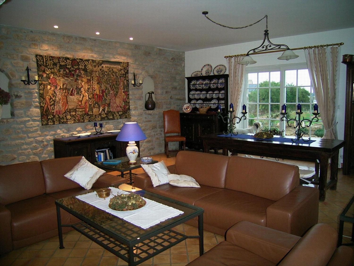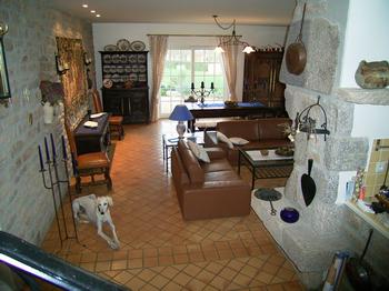 Das Ferienhaus besteht aus einem großzügigen Wohnzimmer (35m²) mit einem alten bretonischen Kamin. Das mit handgebrannten Terracotta-Tometten geflieste Erdgeschoß ist fußbodenbeheizt; der Salon ist sehr geschmackvoll mit echten bretonischen Antiquitäten möbliert. Die Küche ist offen zum Eingangsbereich und Wohnzimmer und verfügt zusätzlich über eine kleine Abstellkammer. Weiter gibt es 4 Schlafräume (3 DZ, 1 EZ) für insgesamt 7 Personen sowie 3 Bäder (2 Duschen, 1 Bidet, 1 Badewanne, 3 WC's).