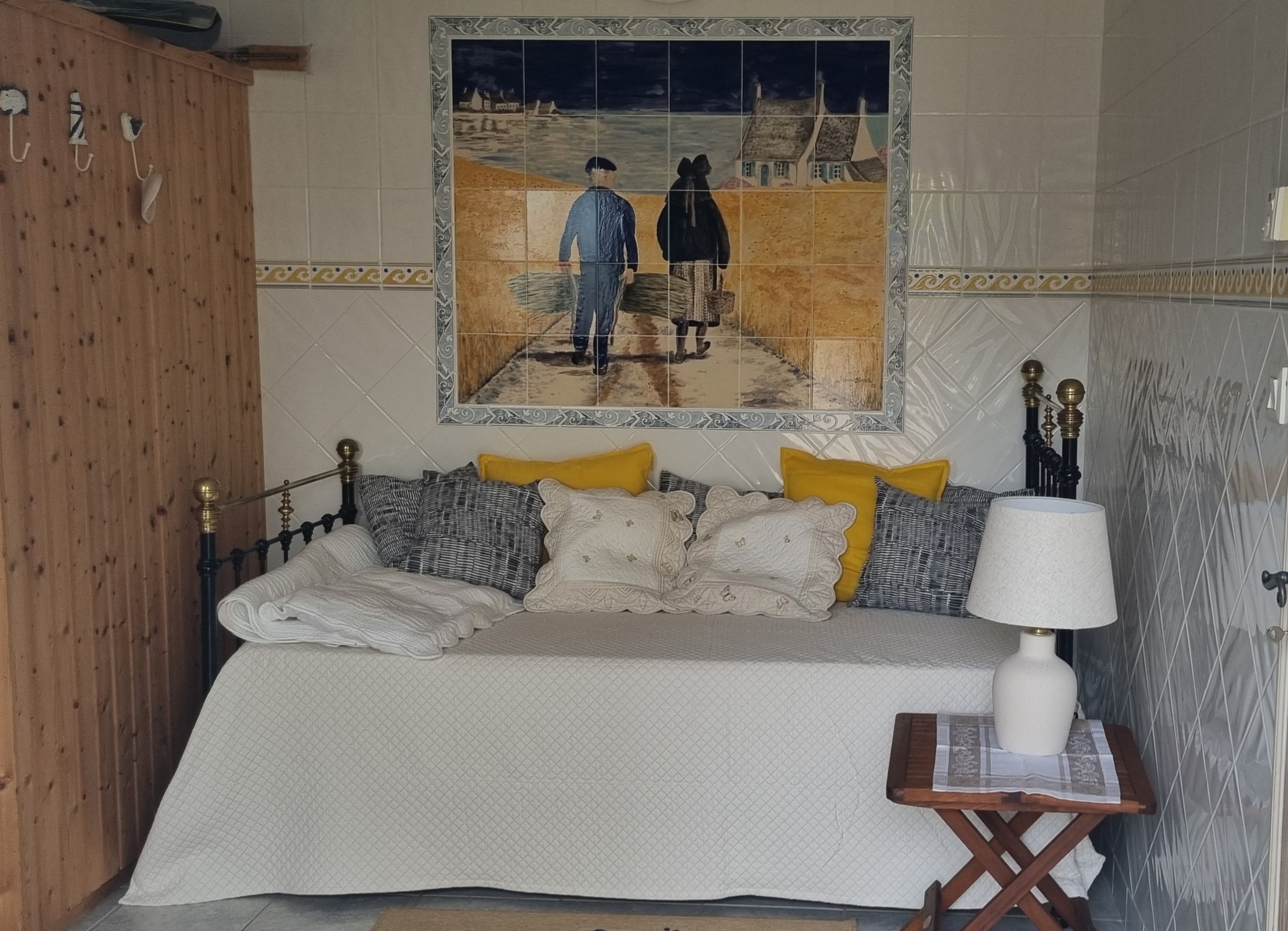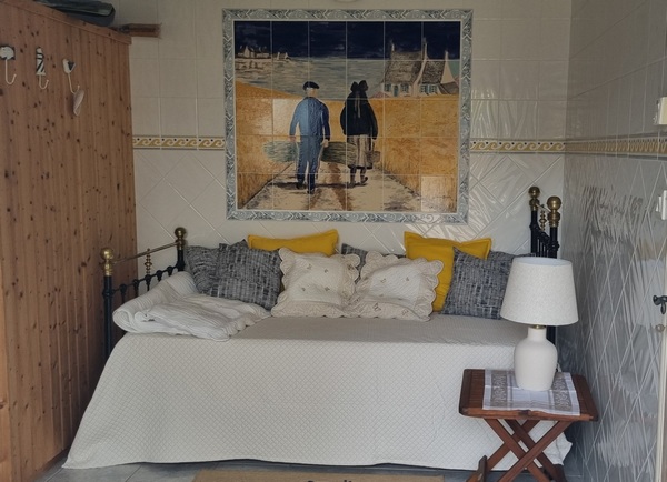 Das Einzelbett steht im Saunabereich